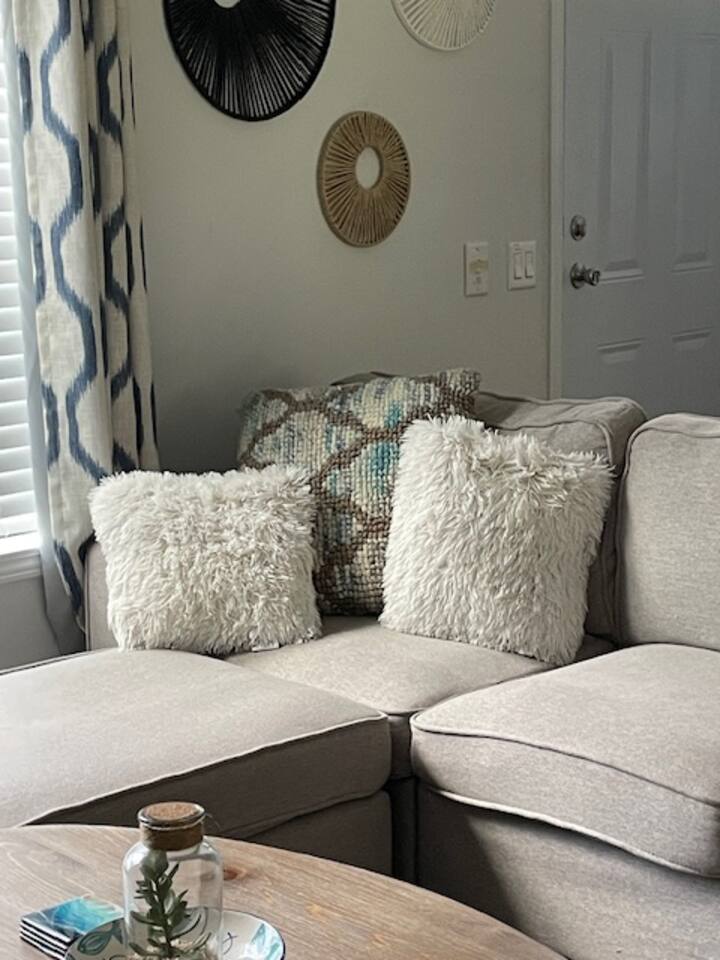 Winter 2025 update: For winter all the fuzzy blankets are out, and newly added electric fireplace with blower for cozy movie nights! The fire pit is up and ready, I added a back yard fire hydrant for Fido. For Summer- added beach cruiser bikes, Jenga, corn hole & a vintage Croquet set in back. Amenities with the house: ☑ Full Kitchen - Plates/ bowls/ silverware for up to 10 - glasses - coffee mugs - drip coffee maker (w/filters) - ground coffee - Salt/ pepper/ oil - dish soap - sponge - baking sheets - pots and pans - wine opener - wine glasses - servings spoons and forks - baking serve ware - pizza cutter - measuring cups - pot holders - kitchen towels - knife set - Glass Pitcher w/ spigot - can opener - full size Refrigerator/ Freezer - paper towels - garbage bags Appliances - Drip Coffee maker - Water Kettle - Blender - Rice Cooker - Toaster - Quesadilla maker - Indoor smores maker ☑ Living Room/ office workspace - 75 in. Smart TV - High speed 1G wi-fi - extra blankets - deck of cards - puzzles - board games - books - seating for 6-10 - Ceiling fan & Light - desk area/workspace in hallway - highchair - booster chair ☑ Dining Room - table and chairs for six - countertop for serving w/ two bar stools - bar ware/ wine glasses ☑ Primary Bathroom - full size shower - Jacuzzi jetted bathtub - Towels - toilet paper - hair dryer - hand soap - shampoo - conditioner ☑ Primary bedroom - King premium bed w/ sheets, pillows, comforter - two bedside tables w/ shelves & USB outlets - Smart TV w/ remote - two bedside lamps - drawers (8) for clothing storage - Huge closet to hang clothes - extra blankets and pillows - Premium roll-away bed (sleeps 1) - Pack n' Play ☑ Bedroom #2 - Three Tier Bunk bed - Bottom is a Queen - Middle is a Double - Top is a Twin XL - All beds w/ sheets, blankets and pillows - bedside lights - LED table decor ☑ Bedroom #3 - Queen Premium bed w/ sheets, blankets and pillows - two bedside tables w/one drawer and shelf -two bedside lights ☑ Bathroom - full size shower/ bathtub - toilet paper - hair dryer - hand soap - shampoo - conditioner ☑ Other items - full-size Washer and Dryer - Smores sticks - indoor smores maker - broom/ dustpan - Iron - Ironing board - Steamer - Shovel - Ice Melt ☑ Outside - Water hose (if needed) -beach towels -beach toys - hot tub towels